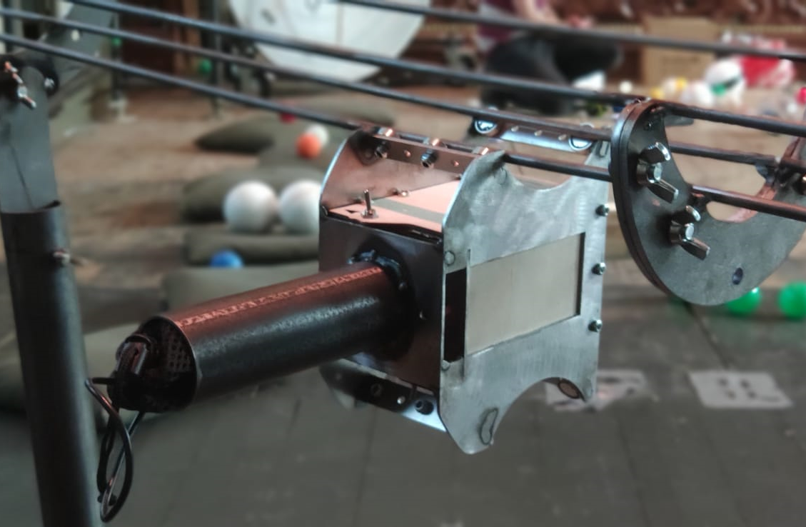 An instrument commissioned for a music theater play which plays various sounds when a ball rolls past the sensor.