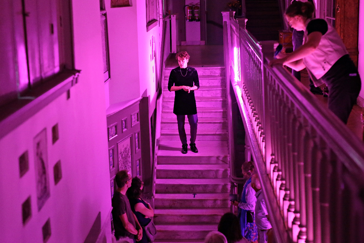 In the play 'BELLE', the audience is led through various rooms of the national monument Slot Zuylen, while following a story about the early life of Belle van Zuylen. The castle, which nowadays is open for the public as museum, has been given a neon makeover using various forms of LED lightning.