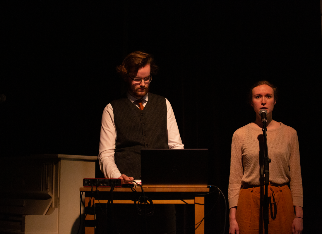 The entirety of the composition is based around the heartbeat. The heartbeat is almost always there, either in patterns and rhythms or actually as a heartbeat. The heartbeat drives the dreamy opening, the upbeat playful sequence and the slow decline from contact through denial into desperation. Halfway through the play a live looper is used to symbolize growing up. As the older input slowly fades away the looper is filled with darker words while the heartbeat keeps going. Tension rises and so does the rate of the heartbeat. Near the end of the play suddenly the heartbeat stops together with all electronic sounds. With the heartbeat almost taken for granted now its absence signifies its importance.