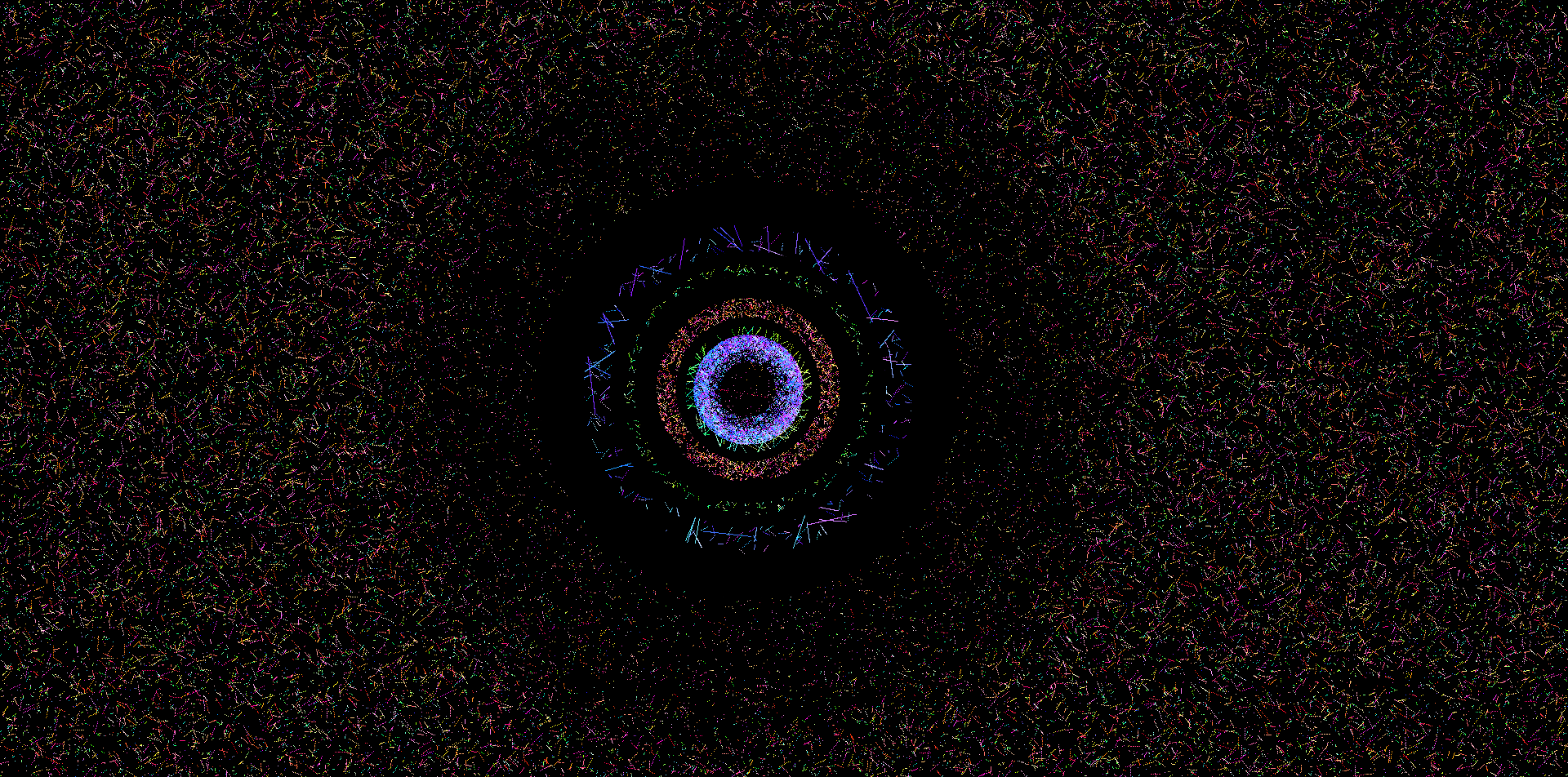 A paint tool concept where pixels near the cursor move and leave trails of bright colors behind.